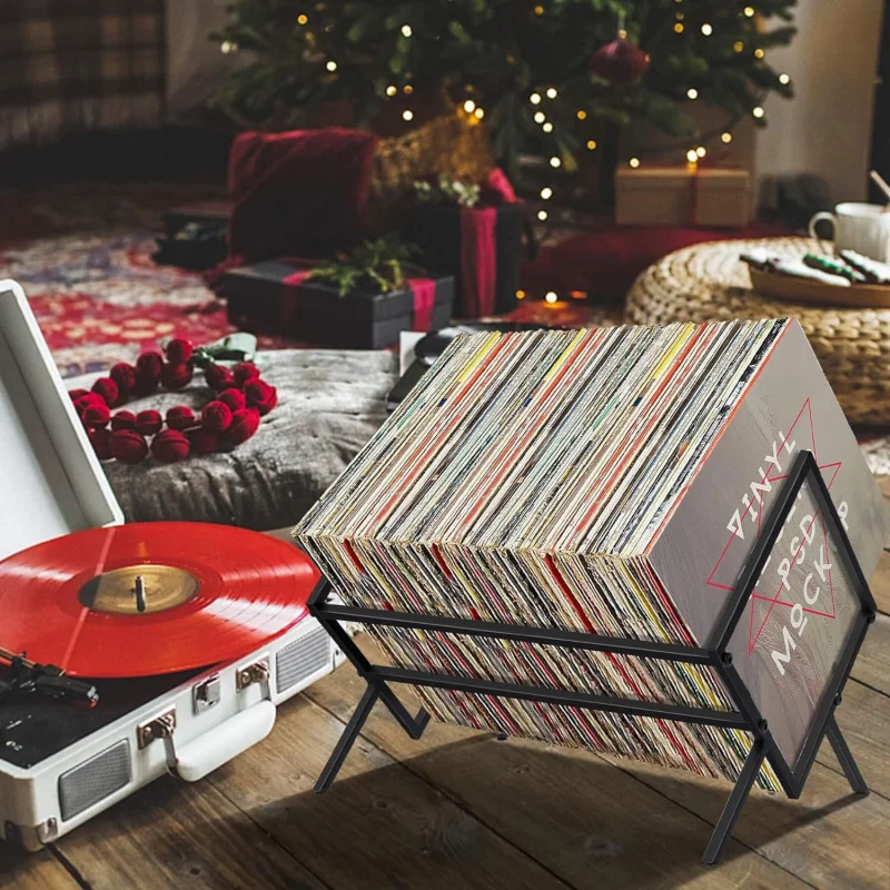 80 LPs Vinyl-Schallplatten Aufbewahrungsregal Album-Organizer Präsentationsständer für Heim-Audiosystem Schwarz