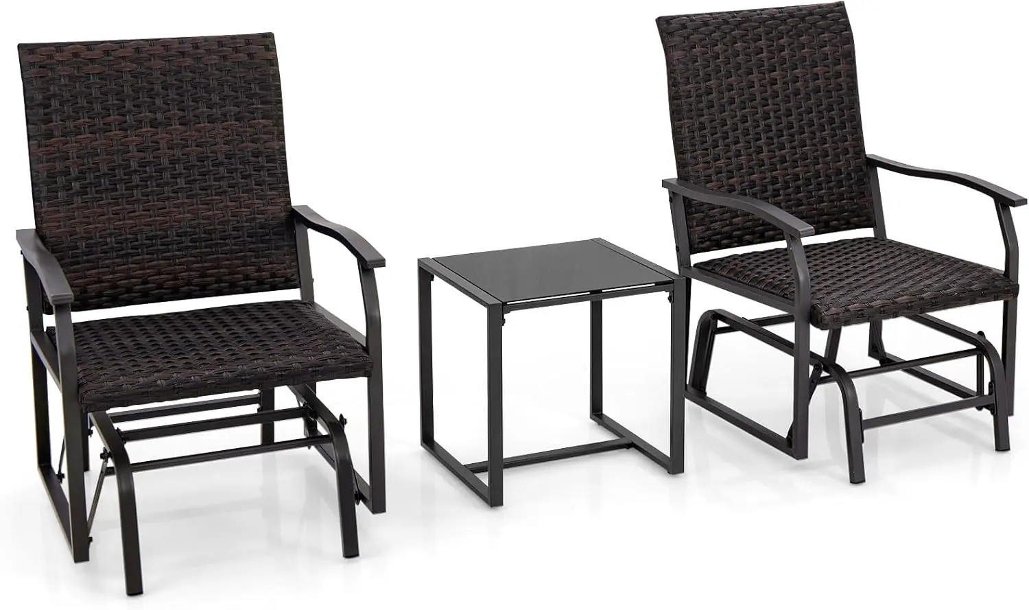Rattan Gartenmöbel-Set wetterfest, Gartenschaukel Schaukelstuhl mit gepolstertem Sitz, Balkonmöbel-Set 2 Stühle mit Tisch