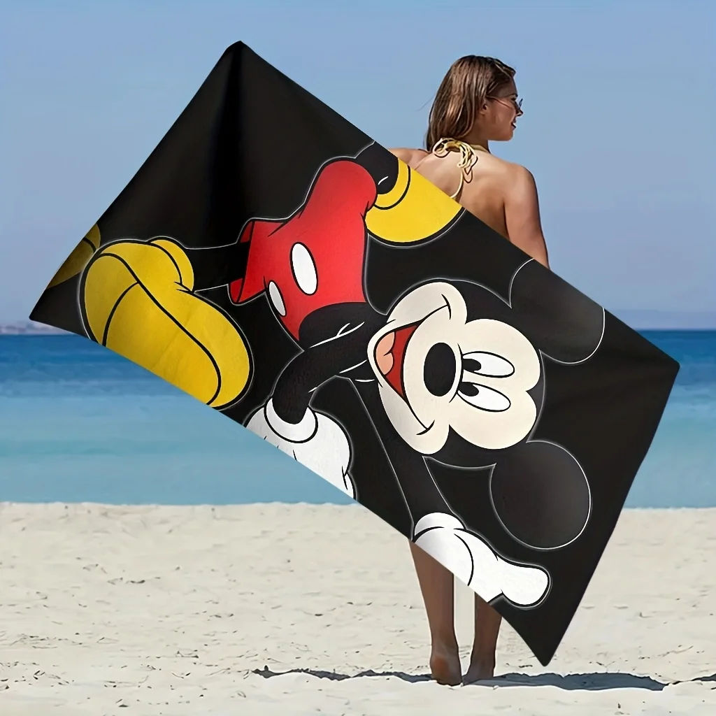 1 Stück Disney Mickey Mouse Strandtuch aus Polyester – schnell trocknendes, leichtes, weiches Handtuch zum Schwimmen, Reisen, Camping, Unisex-Strandmatte