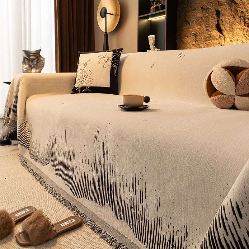 Ganzjahres-Sofabezug, rutschfest, mit Quasten – maschinenwaschbarer Couchschutz aus Chenille-Stoff, Schonbezug für 1- bis 4-Sitzer-Sofas