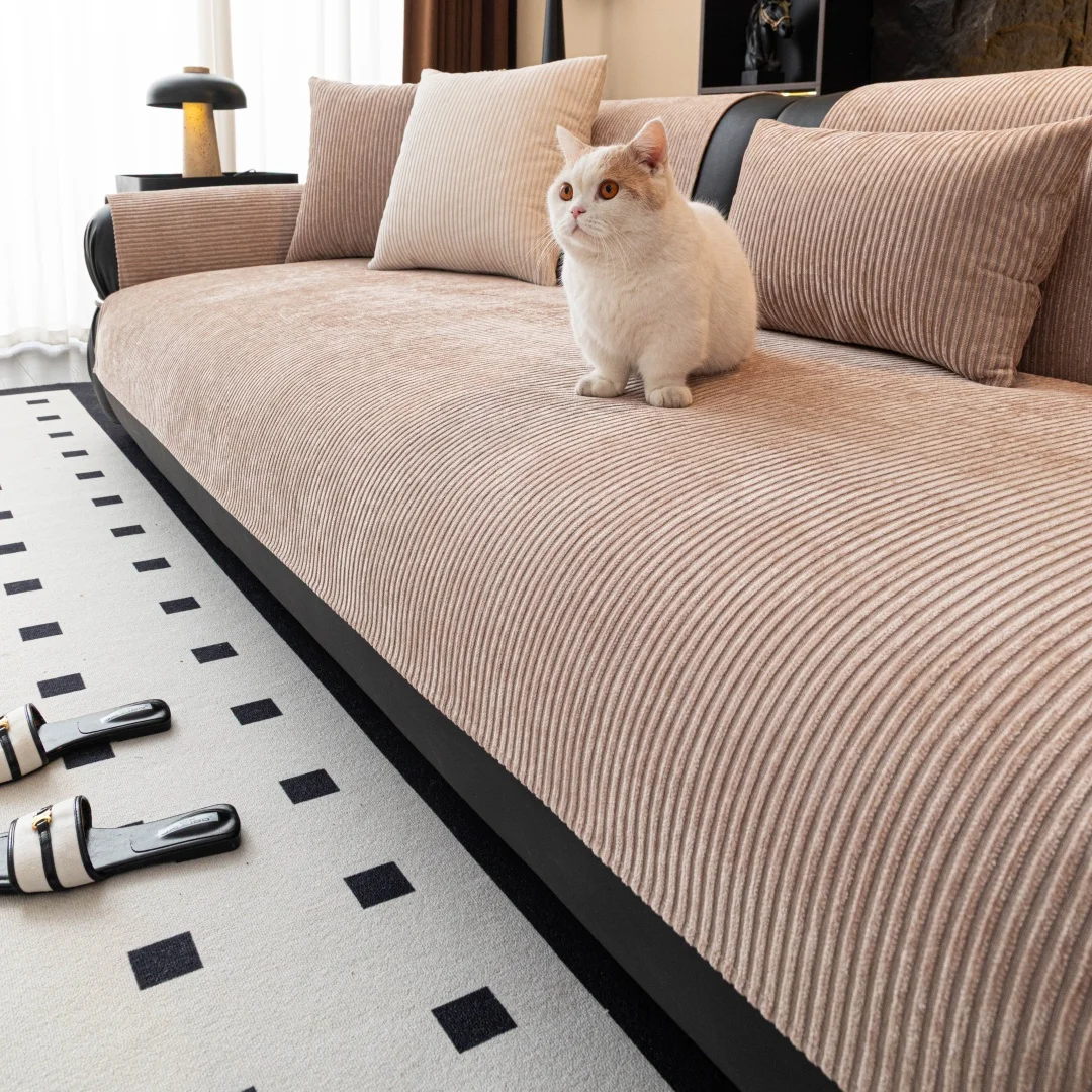 Minimalistischer Streifenmuster Chenille Rutschfester Sofabezug für Alle Jahreszeiten Wohnzimmermöbel Deko Couch Kissenbezug Schonbezug