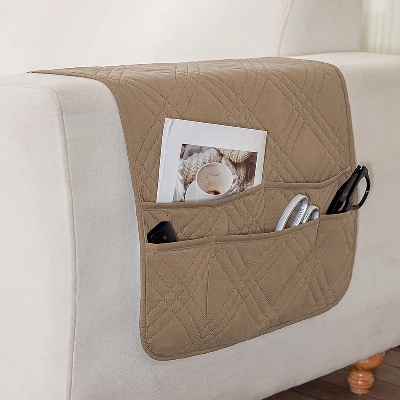 1 Stück Gesteppte Sofa-Armlehnenbezüge Einfarbiger Couch-Sesselüberzug mit Aufbewahrungstasche Sofa-Armschutz für Wohnzimmer