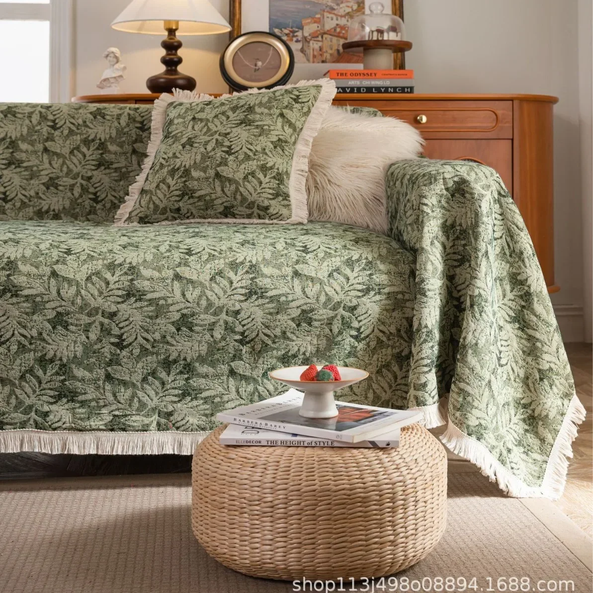 Amerikanisches Sofakissen, grünes Blatt, Jacquard, Wohnzimmer-Sofabezug für alle Jahreszeiten, verdickter, kratzfester Anti-Katzen-Sofabezug