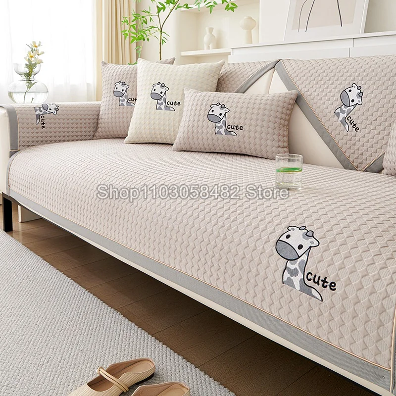 Sofabezug aus Baumwolle und Leinen, vier Jahreszeiten, universelles Sofas, Handtuch, einfarbig, Sofamatte für Wohnzimmer, rutschfestes Couchkissen, Zuhause