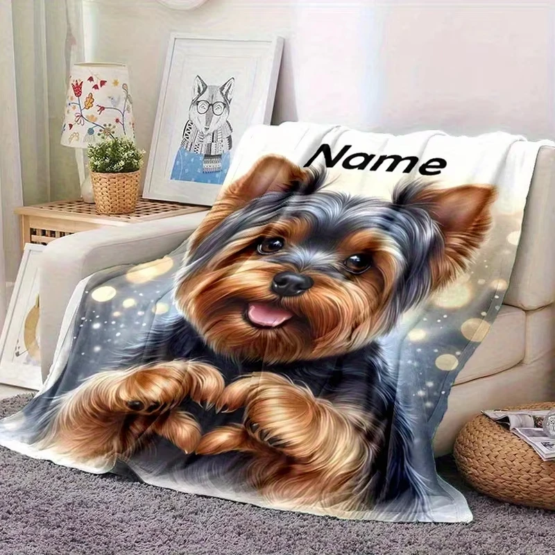 Personalisierte Flanelldecke mit individuellem Namen, Yorkshire Terrier, weicher Überwurf für Bett, Sofa, Bürostuhl, ideales Geburtstags- und Weihnachtsgeschenk