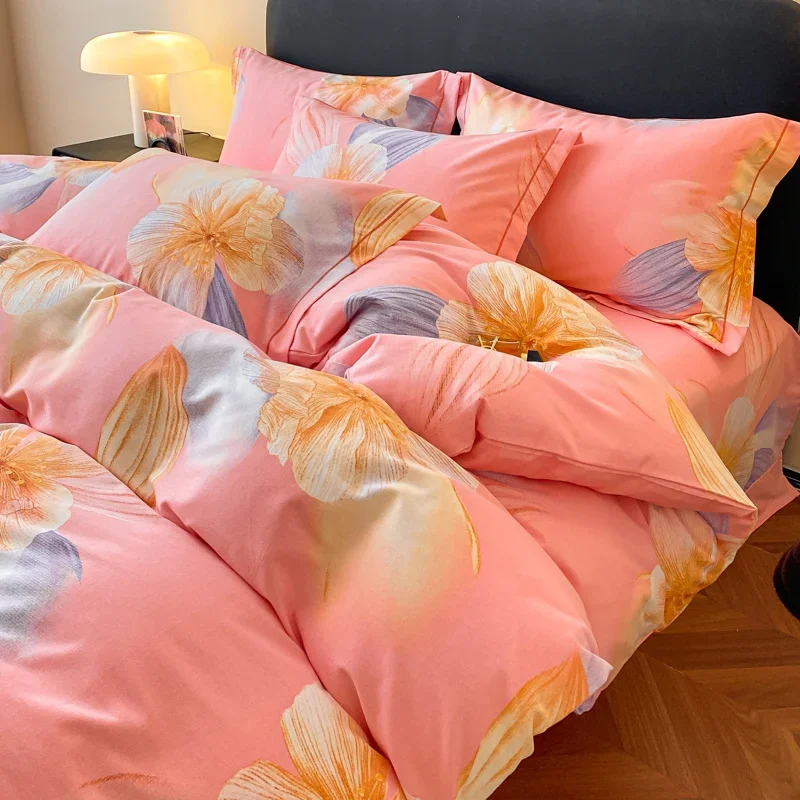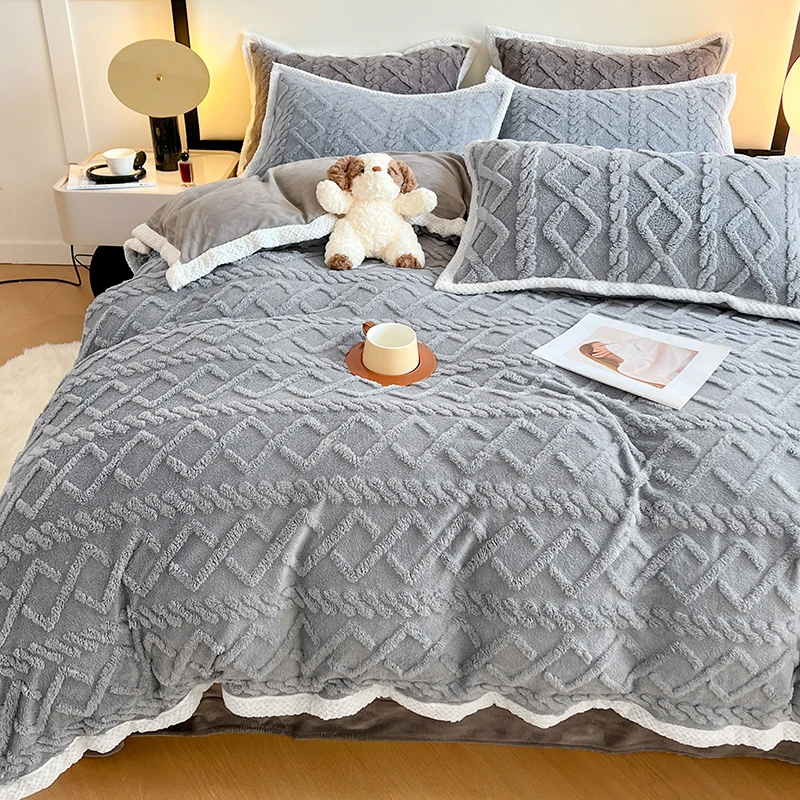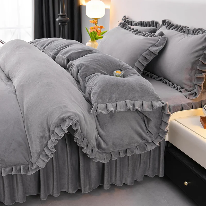 Schwarzes Bettbezug-Set mit Quetschfalte, 2/3-teilig, King-Size-Bettwäsche aus Polyester, Bettwäsche-Sets, luxuriöse Heim- und Hotelgebrauch (keine Füllung, kein Laken)