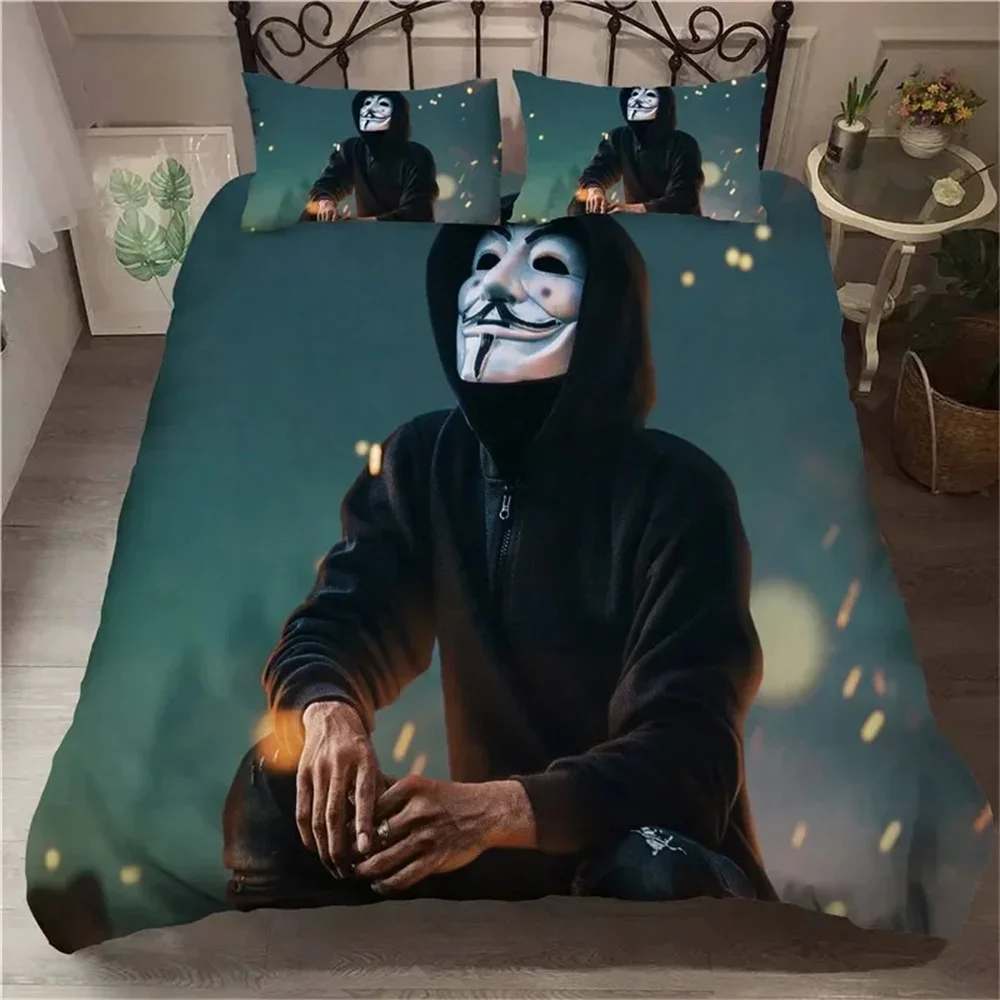 3D Anonymus mit Maske Bettbezug mit Kissenbezug Bettwäsche-Set Einzel-, Doppel-, Twin-, Voll-, Queen- und King-Size-Bett-Set für Schlafzimmerdekoration