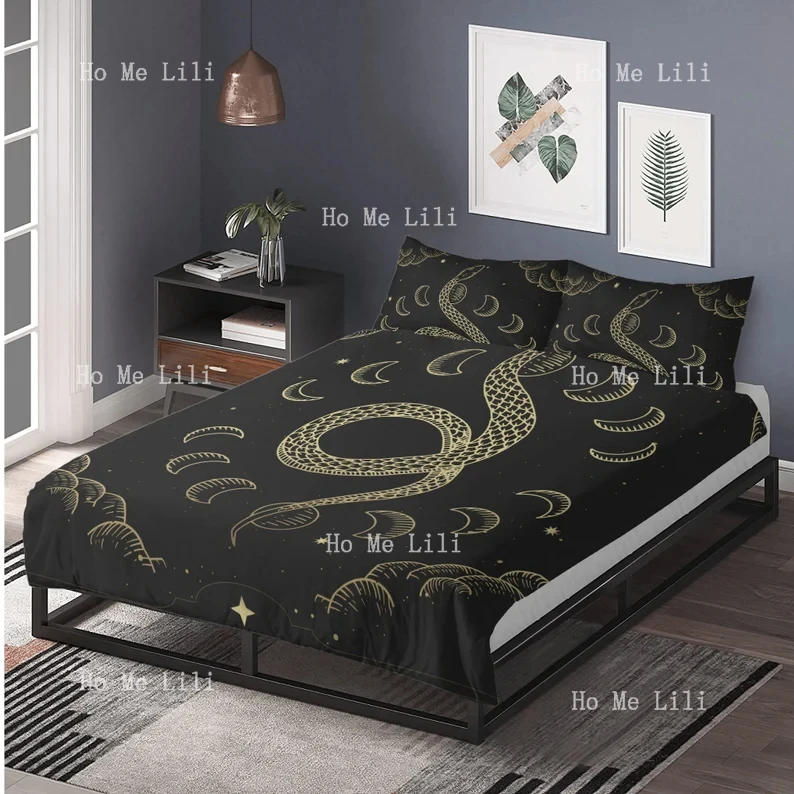 Schwarze himmlische Mondphase Witchy 3-teilige Bettwäsche Boho Snake Witch Dark Academia Whimsy Goth Schlafzimmerdekoration