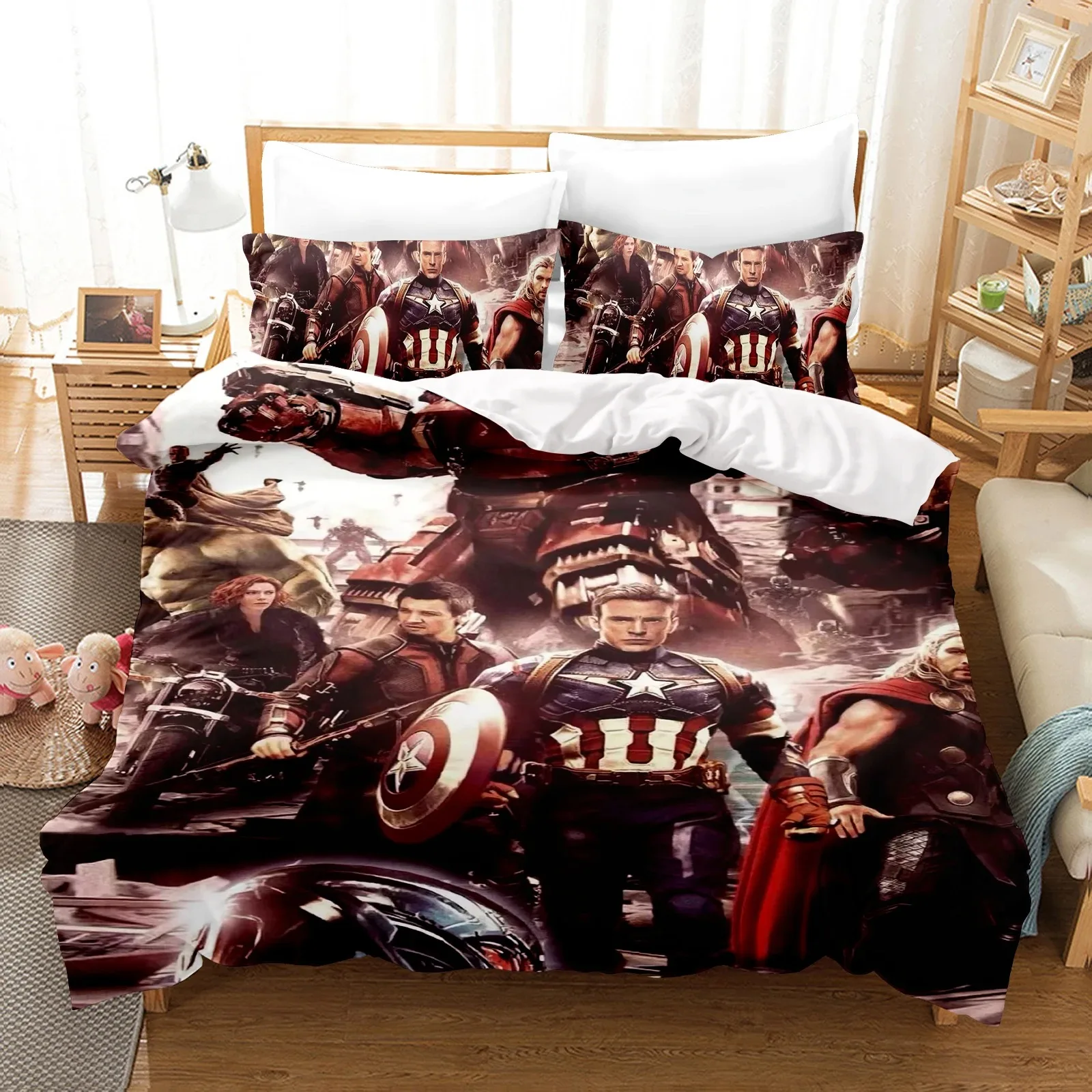 3D-Druck Marvel Avengers Bettwäsche-Set, Bettbezug, Tröster, Bett-Set, Bettbezug, Kissenbezug, King Queen Twin Size, Jungen, Mädchen, Erwachsene