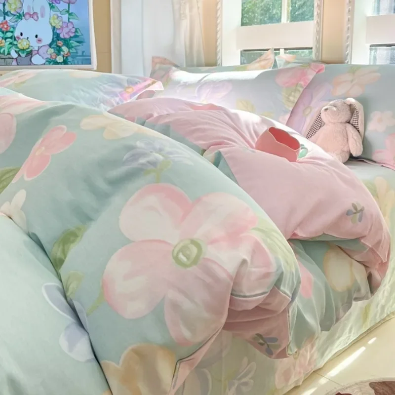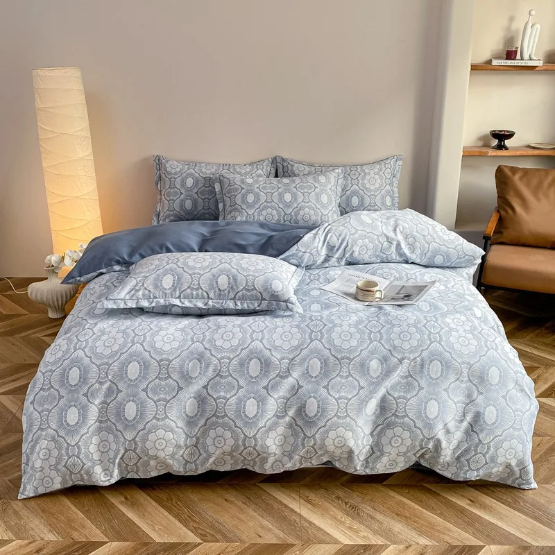 Bettwäsche-Set aus gebürsteter Baumwolle im nordischen Stil, bedruckter Bettbezug mit flachem Laken und Kissenbezügen, knitterfrei, für Studentenwohnheime