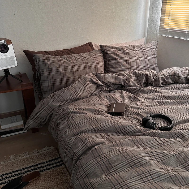 Bettbezug aus 100 % Baumwolle, karierter Stil, Bettwäsche, Deckenbezüge, 160 x 210 cm, Bettbezug Housse de Couette 220 x 240 (Kissenbezug, benötigt Bestellung)