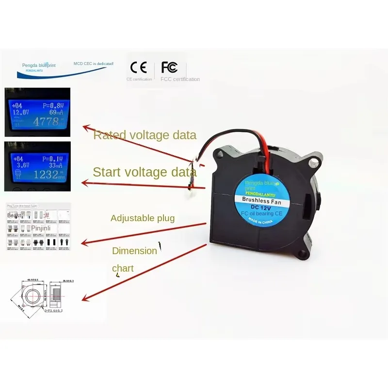 PA Blueprint 4020 Turbogebläse 4 cm 12 V 0,07 A 6 cm Linie lange und kurze Linie Lüfter 40 x 40 x 20 mm