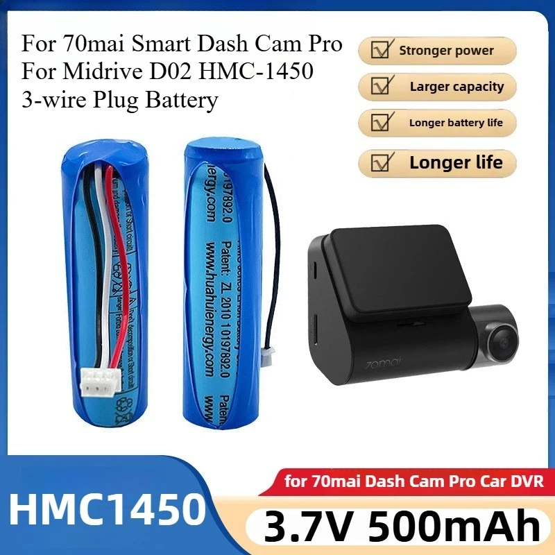 Original 3,7 V 500 mAh Li-Ion Akku für 70mai Smart Dash Cam Pro A550 A550S A800 Midrive D02 HMC1450 Ersatzakku 3-Draht