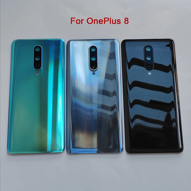 A+++ hintere Glas-Batterieabdeckung für OnePlus 8, mit Kameraobjektiv, Austausch des hinteren Türgehäuses und Vorkleber