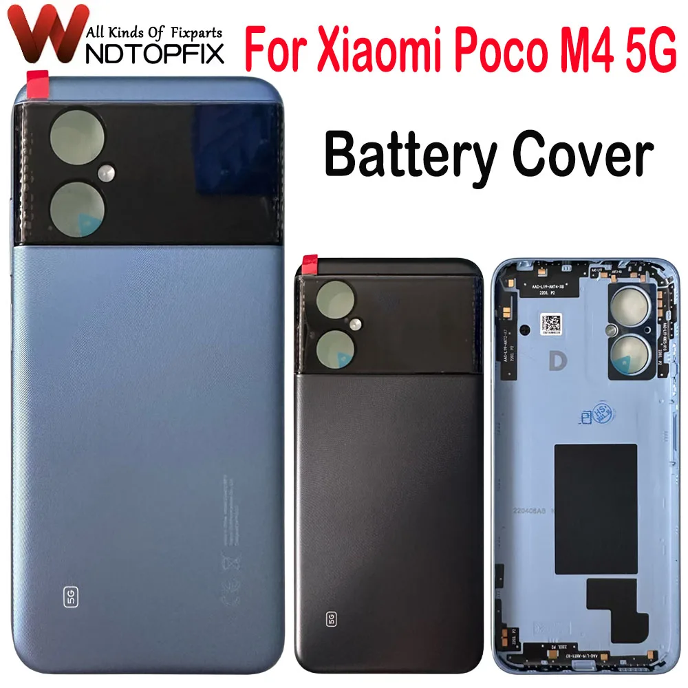Neue Für Xiaomi Poco M4 5G Batterie Abdeckung Zurück Glas Panel Hinten Gehäuse Fall Zurück Panel Für Poco M4 5G Batterie Abdeckung Mit Kleber