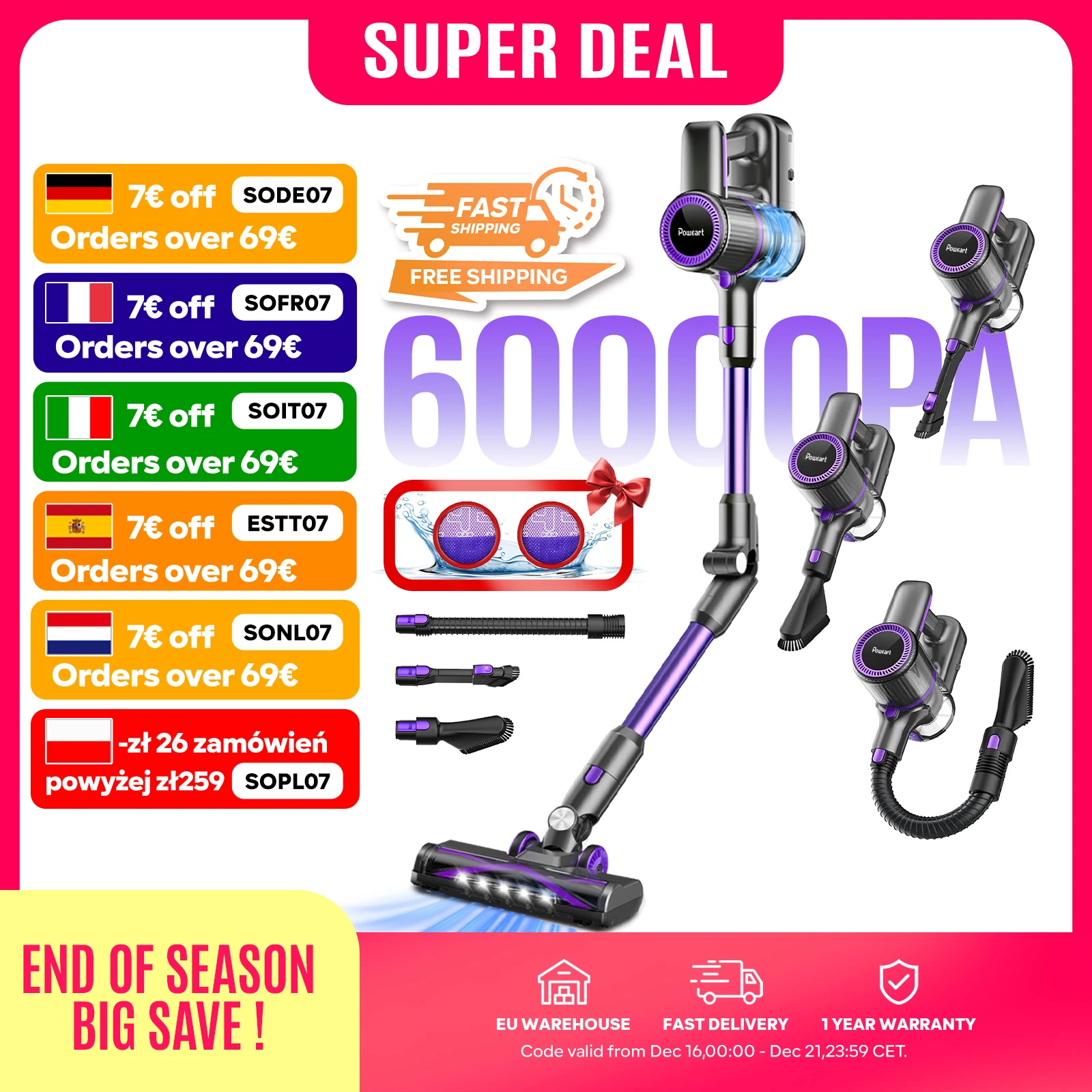 N700 Akku-Staubsauger, 60KPa, 50Min, 1 Liter Staub Behälter, Biegbarer Griff, 4 Arten von Saugbürstenköpfen, für Hartholzböden, Auto, Haare, Teppich