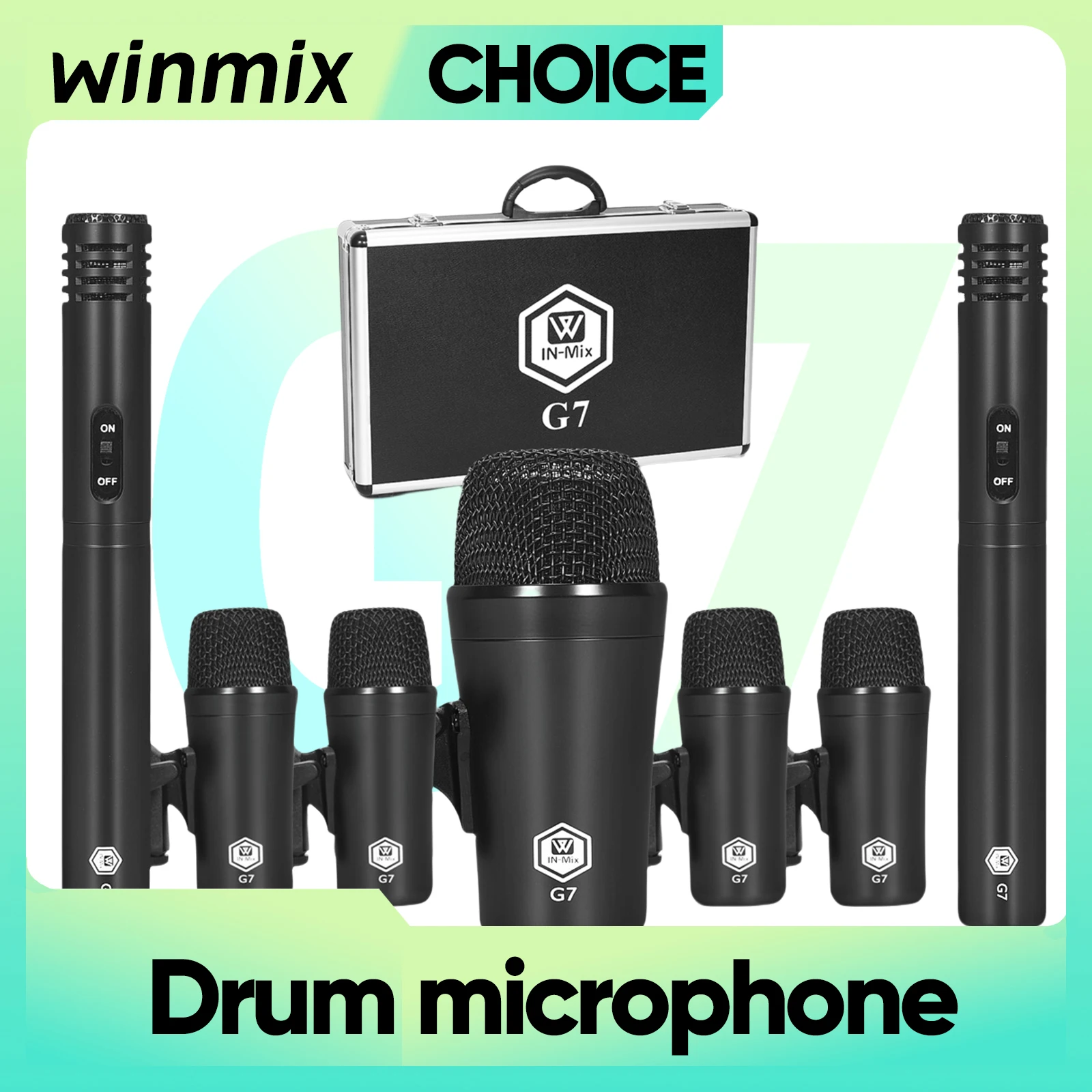 Winmix 7-teiliges Bühnen-Trommelmikrofon, professionelles Metallring-Trommel-Mikrofon-Set für Live-Shows, professionelle Auftritte
