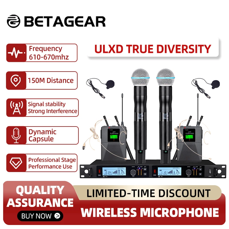 Betagear ULXD True Diversity Drahtloses Mikrofon 2-Kanal 610-670 MHz 150 m Empfangsabstand für professionelle Bühnenauftritte