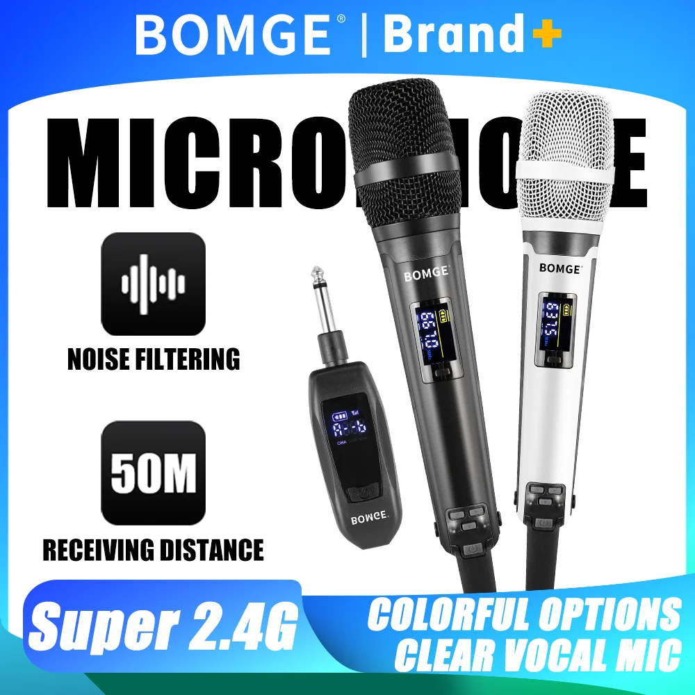Karaoke-Mikrofon BOMGE SKM9000, 2 Kanäle, kabellos, Super-2,4-G-Frequenz, für Unterricht, Hochzeit, klare, stabile Audioübertragung