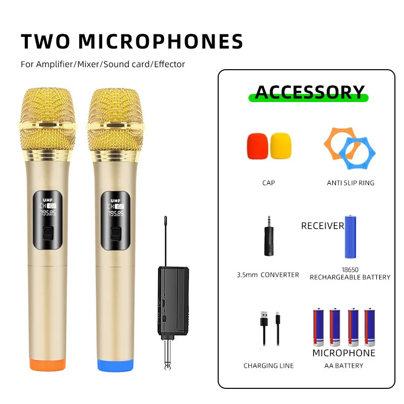Gutes drahtloses Mikrofon, UHF-Festfrequenz, 2 Kanäle, Handmikrofon, Mikrofon für Party, Karaoke, professionelle Kirche, Show, Treffen