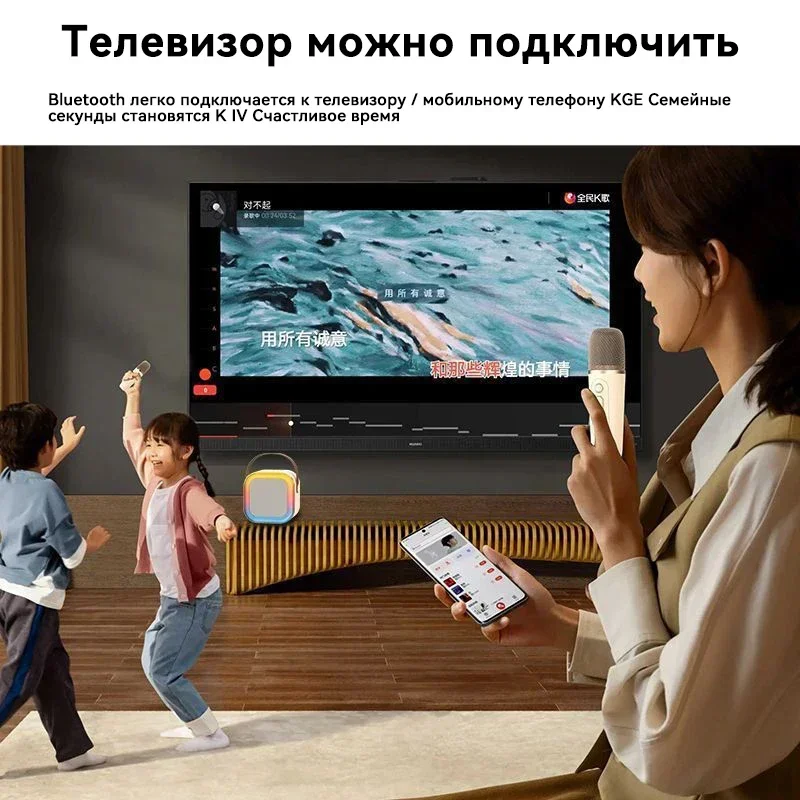 Lenovo Tragbarer Bluetooth Karaoke K12 Lautsprecher Kabelloser Musikplayer mit 2 Mikrofonen für Familiengesang und Kindergeschenke