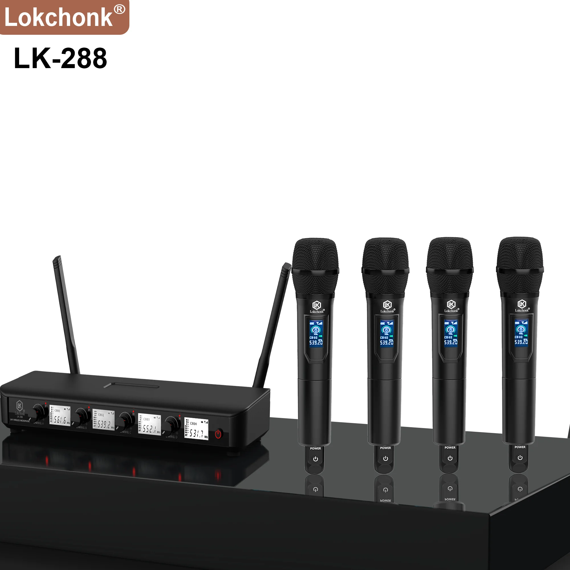 4-Kanal-Funkmikrofonsystem mit fester Frequenz und 4 Handmikrofonen, professionelles UHF-Mikrofon-Set für Karaoke, Bühne, Kirche