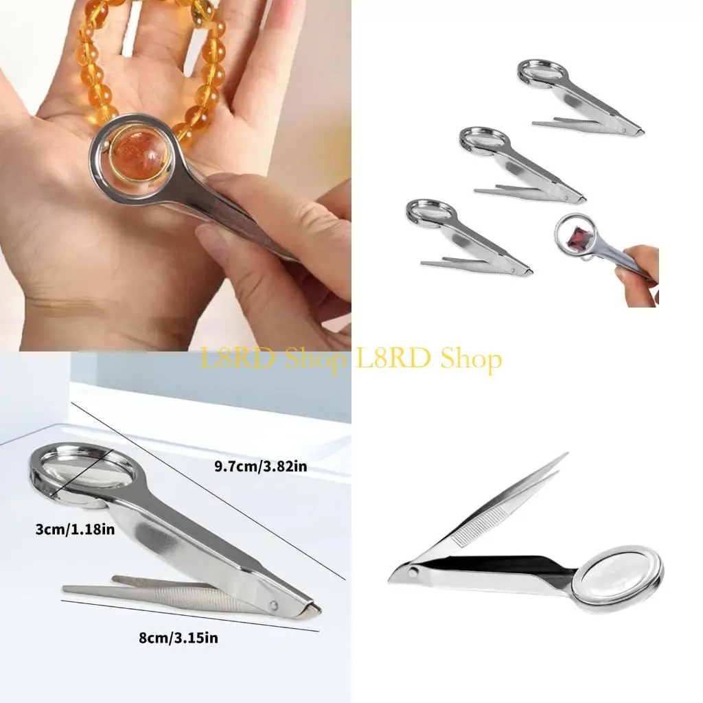 L8RD Lupe mit angebrachter Präzisionspinzette, Splitterpinzette mit Vergrößerungsglas, Augenbrauenentfernungs-Essentials, Unisex