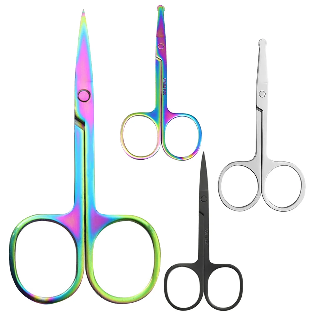 Professionelle Edelstahl-Trimmschere mit schillernder Regenbogenspitze für Männer und Frauen, Augenbrauen, Bart, Schnurrbart, Nasenhaar