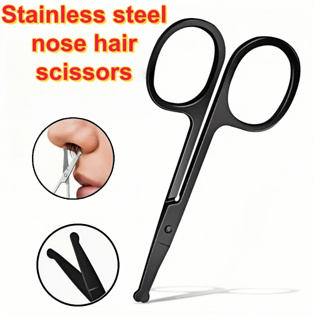 Effizientes und sicheres Nasenhaarschneiden mit schwarzer Rundkopfschere aus Edelstahl – Unisex-Design (schadet der Nase nicht)