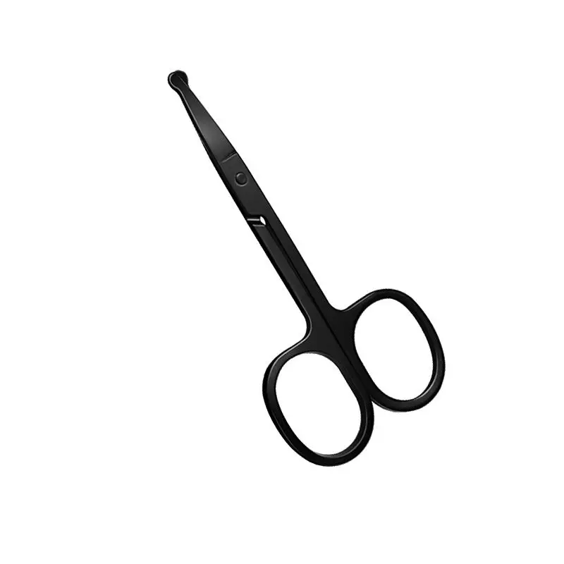 1 Stück Silberne Spiegelglanz-Schere mit Schwarzem Rundkopf für Nasenhaare, Neutrale Edelstahlschere