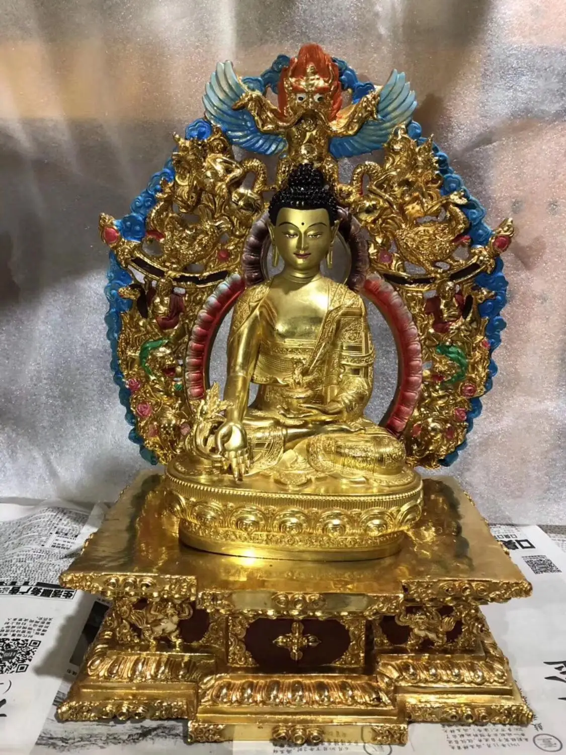Große asiatische hochwertige vergoldete Buddha-Statue, Zuhause, Familie, Schutzpatron, allmächtiger Gott, Nepal, Indien, Shakyamuni, Buddha, Gold-Buddha