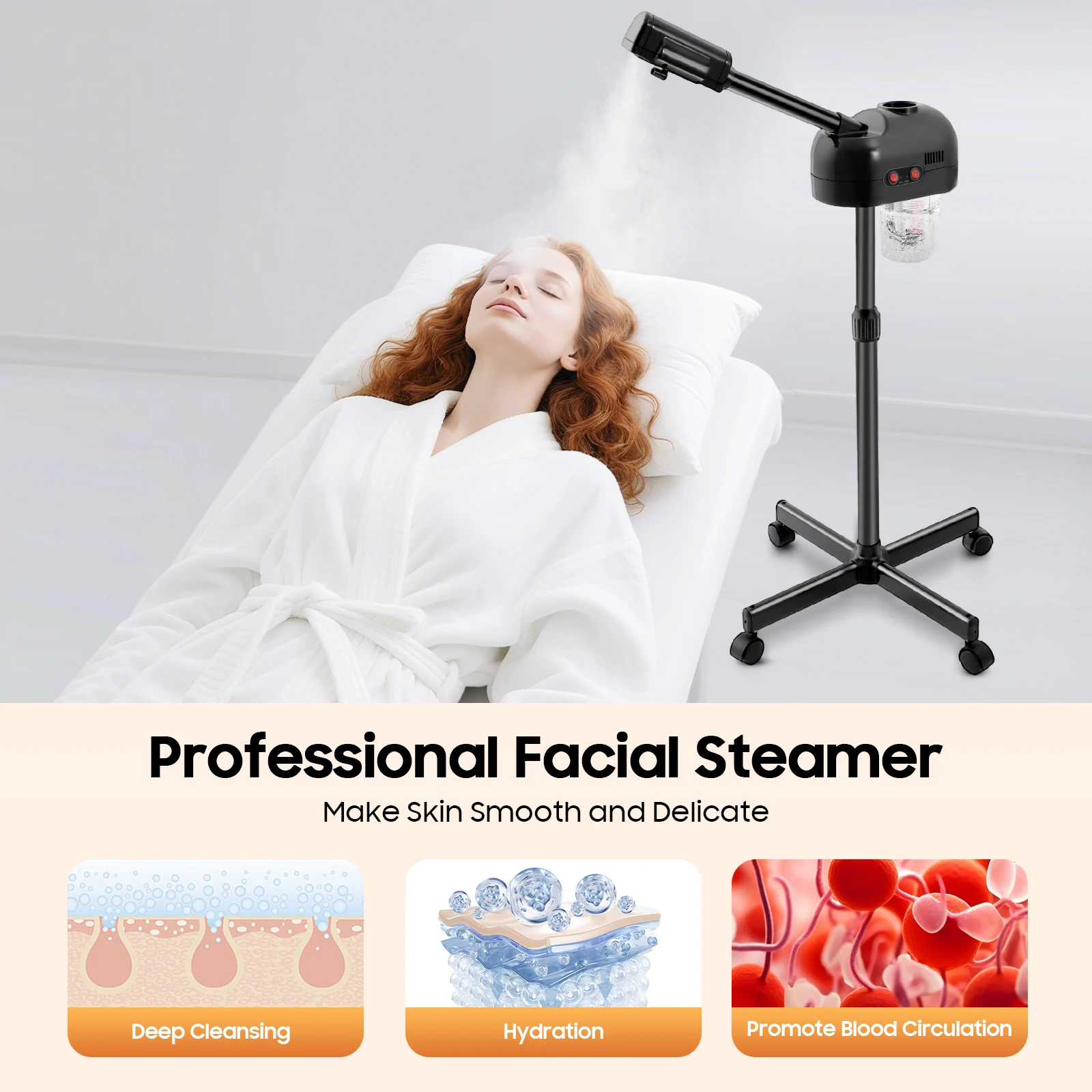 42 ℃ Multifunktions-Gesichtsdampfmaschine W | 360 ° Drehbare Düse und Räder, professionelles Gesichtsdampfgerät für Salon und Zuhause