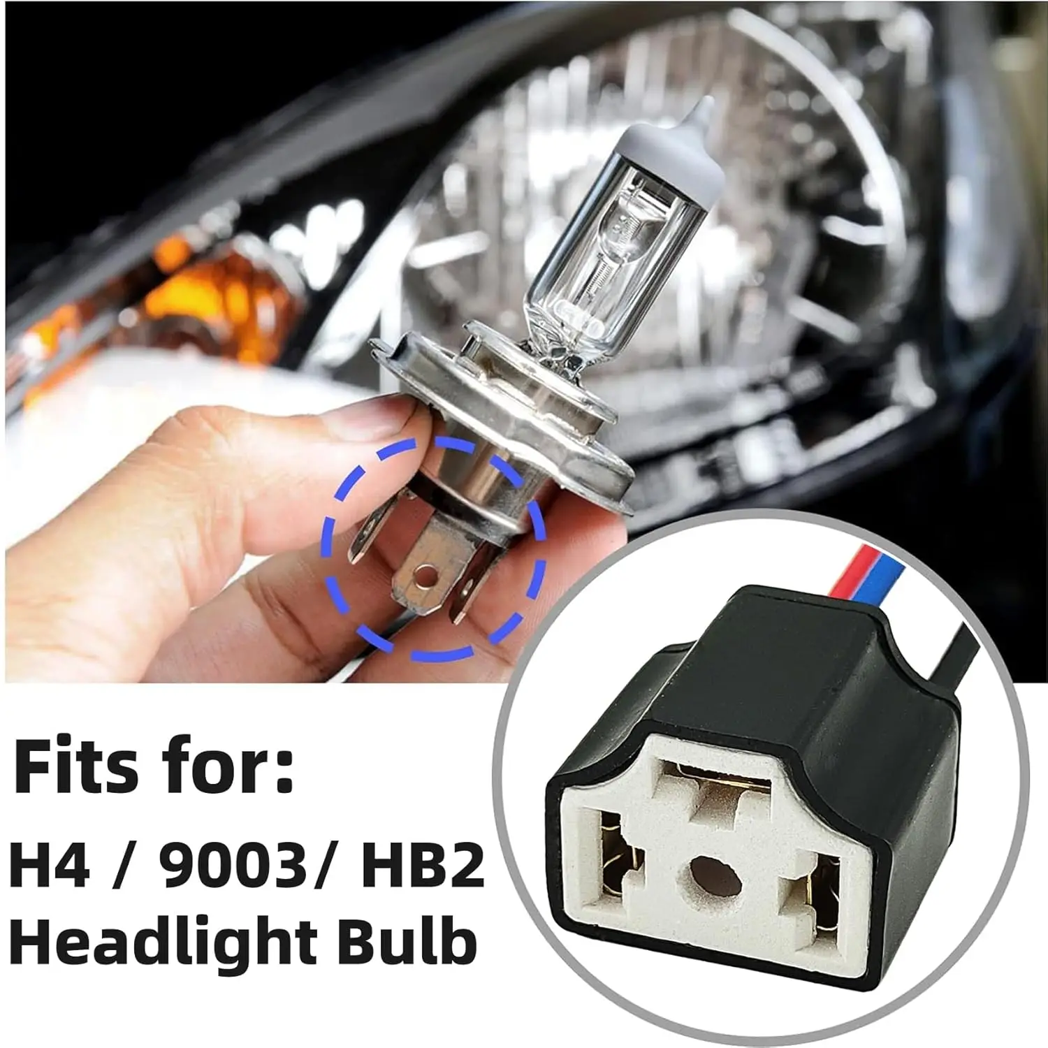 2 Stück Auto-Scheinwerferlampenhalter, Plug-and-Play Kupferdraht-Verkabelung, H4 Keramik-Lampenfassung