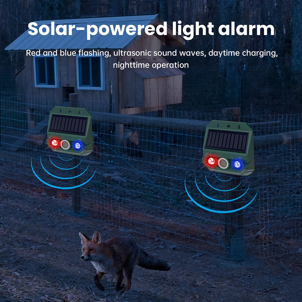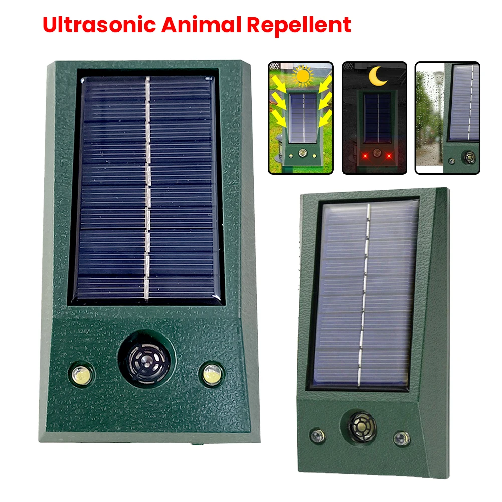 Solarbetriebener Hundevertreiber Multifunktionaler Ultraschall-Gartenvertreiber IP66 Wasserdicht zur Abschreckung von Ratten, Hunden, Füchsen und Schädlingen