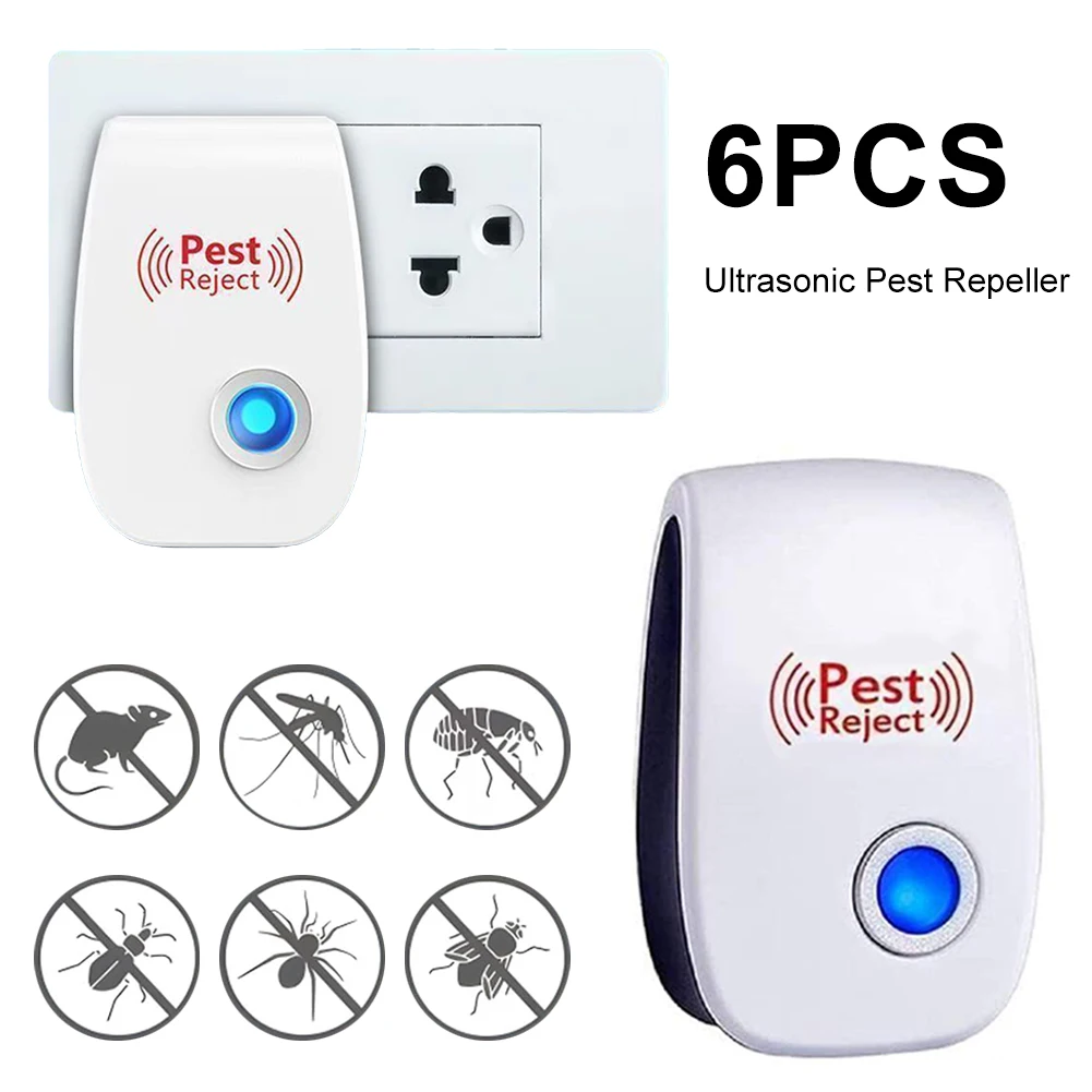 6 Stück Ultraschall-Schädlingsbekämpfer, Insekten-Insektenvertreiber, Schädlingsbekämpfungsgerät mit großer Reichweite, multifunktional, für Zuhause, Keller, Dachboden, Garage