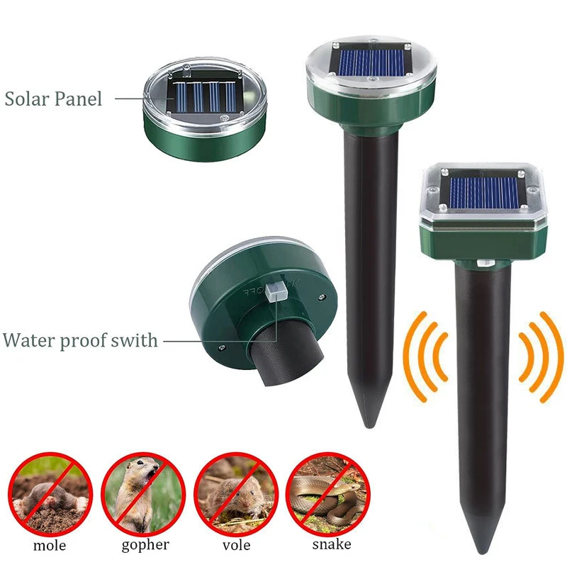 1 Stück Maulwurfabwehrmittel, solarbetriebener Ultraschall-Mausschlangen-Schädlingsbekämpfer, wasserdichte Sonic-Abwehrmittel für den Garten, Bauernhof im Freien