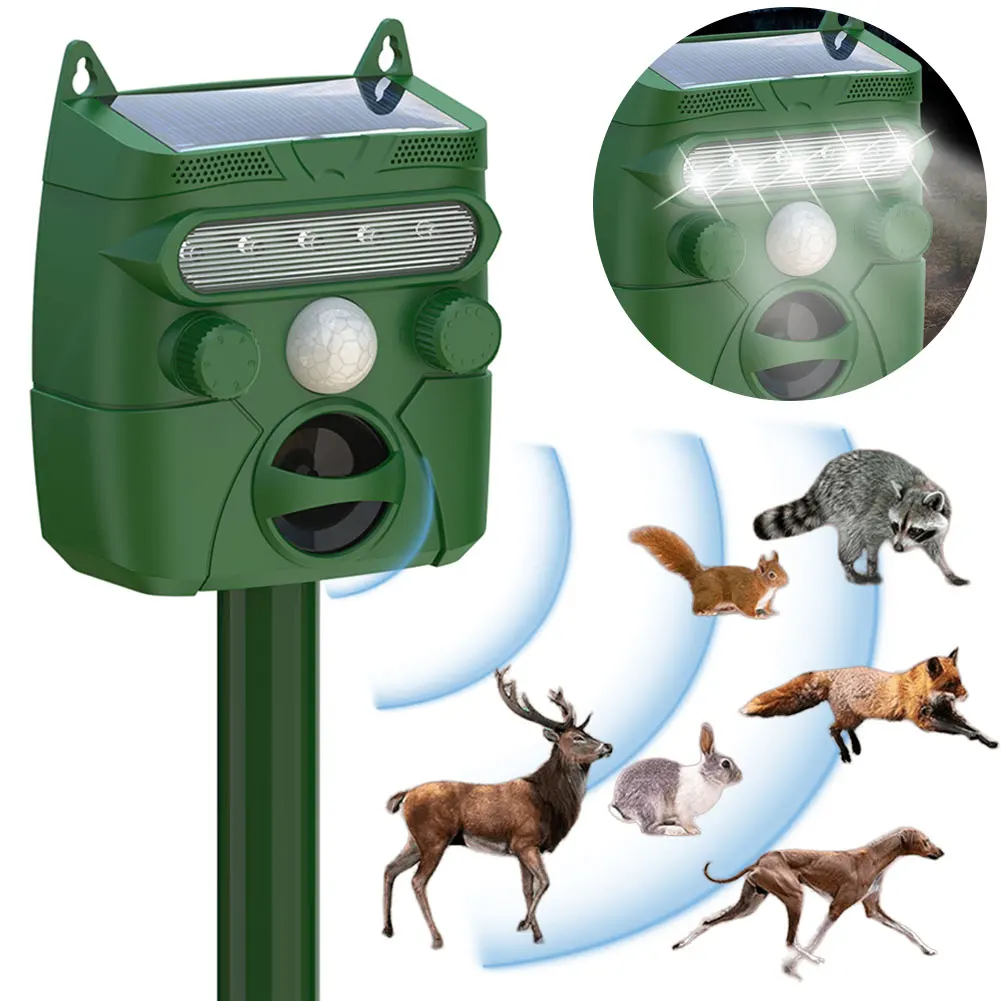 Solarbetriebener Schädlingsvertreiber mit Bewegungssensor und Blitzlicht, Ultraschall-Tierabwehrgerät für Garten, Hof und Rasen