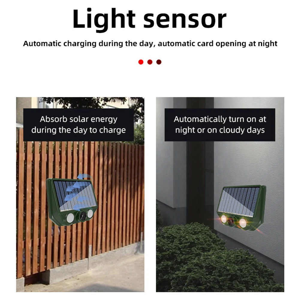 Solarbetriebener Tierabwehrschreck, IP66, wasserdicht, Tierabschreckungsabwehrmittel mit rot-weißem Blitzlicht für Garten, Hof, Bauernhof