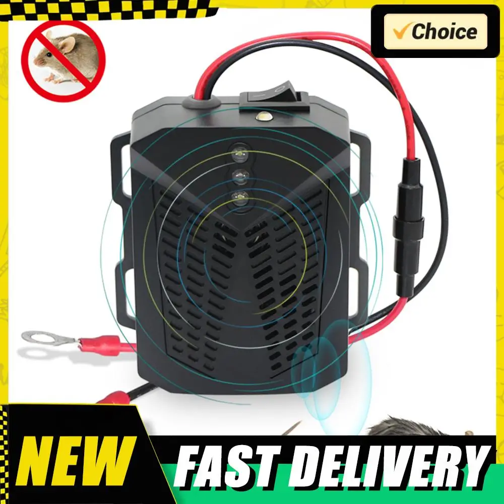 12V-24V Ultraschall-Mausvertreiber, ungiftiger Anti-Rat-Repeller mit Stroboskoplichtern unter der Haube, Nagetierabwehrmittel, Autozubehör