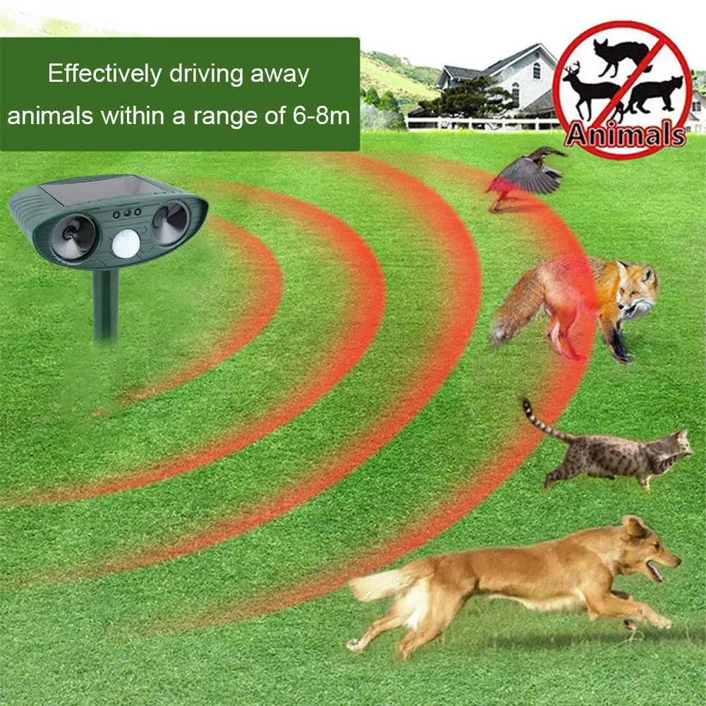 Solaralarm für den Außenbereich mit Bewegungssensor, Schussgeräuschen und Bellen von Hunden, Ton und Stroboskoplicht, Sicherheitsalarmsirene für Bauernhof, Scheune, Hof