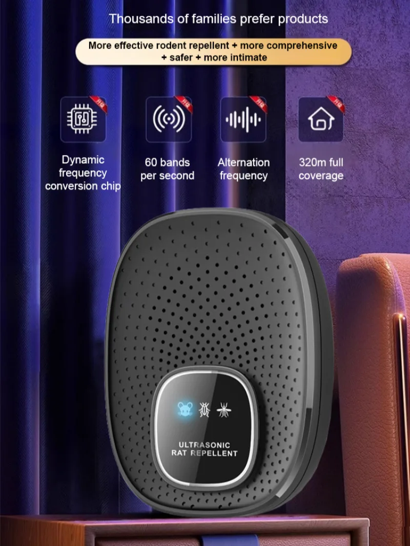 Neuer leistungsstarker Ultraschall-Schädlingsvertreiber, USB-Stecker, Schall-Rattenabwehrmittel für Zuhause, sicher und effizient, ideal für Innen-/Küchen-/Garagen
