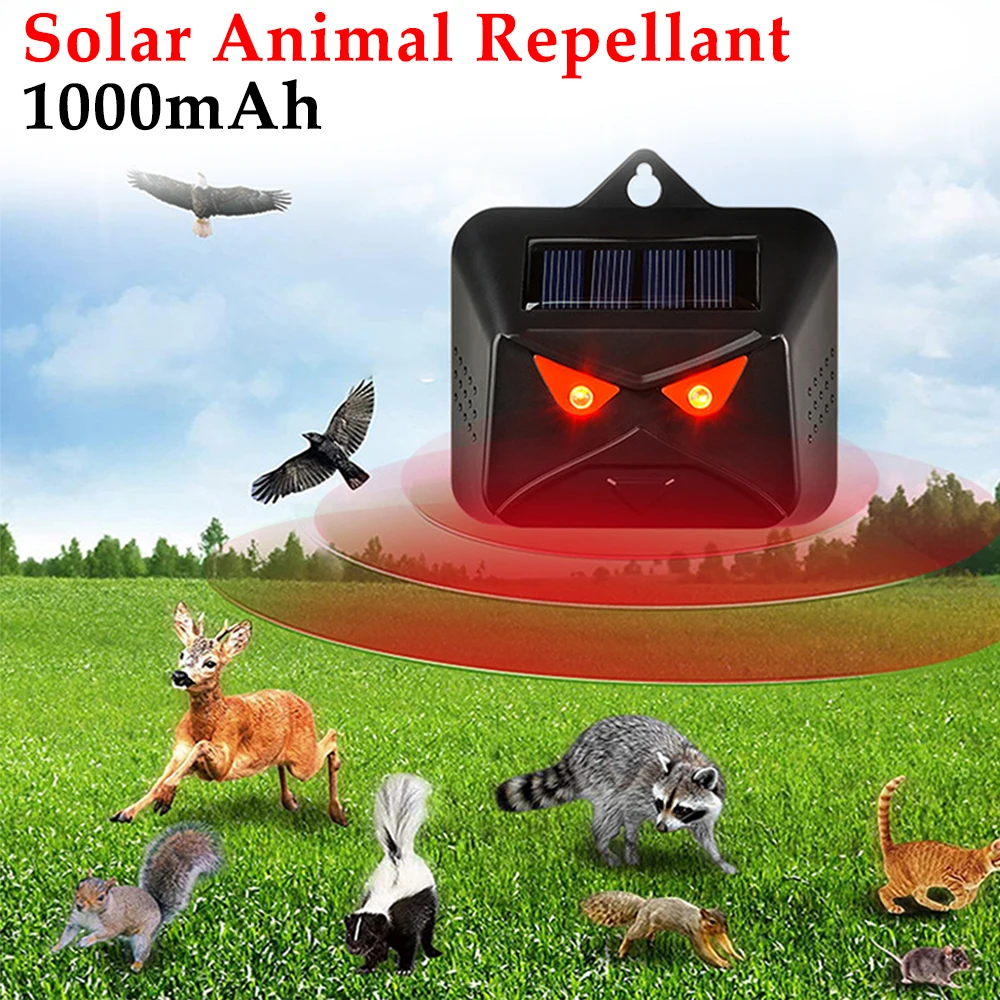 Ultraschall Tier abwehrmittel Katze Hund Abwehrmittel 1000mah Solar Dual Mode angetrieben Garten wasserdicht Tier Abschreckung für Bauernhof
