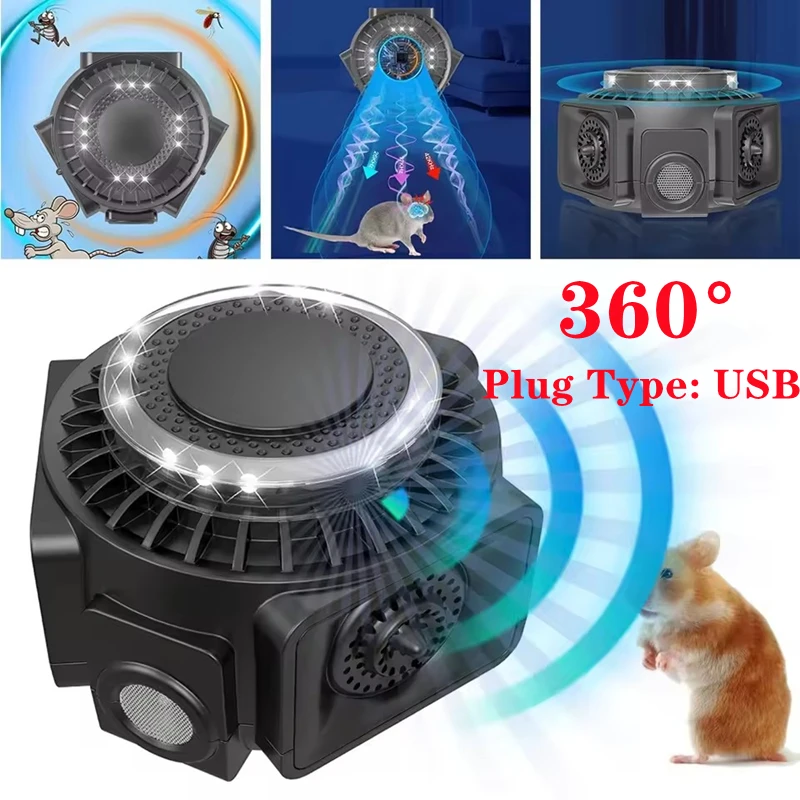 USB-Mäuseabwehrmittel 360° ° Ultraschall-Schädlingsbekämpfer für Nagetier, Mausabschreckung, elektronische Schädlingsbekämpfung für Zuhause, Dachboden, Garage, Hotel