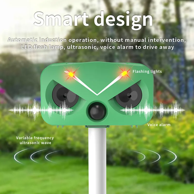 Ultraschall-Tierabwehrgerät mit Außenfrequenz, vier Gänge, einstellbares LED-Blitzlicht, PIR-Infrarot-Erkennung