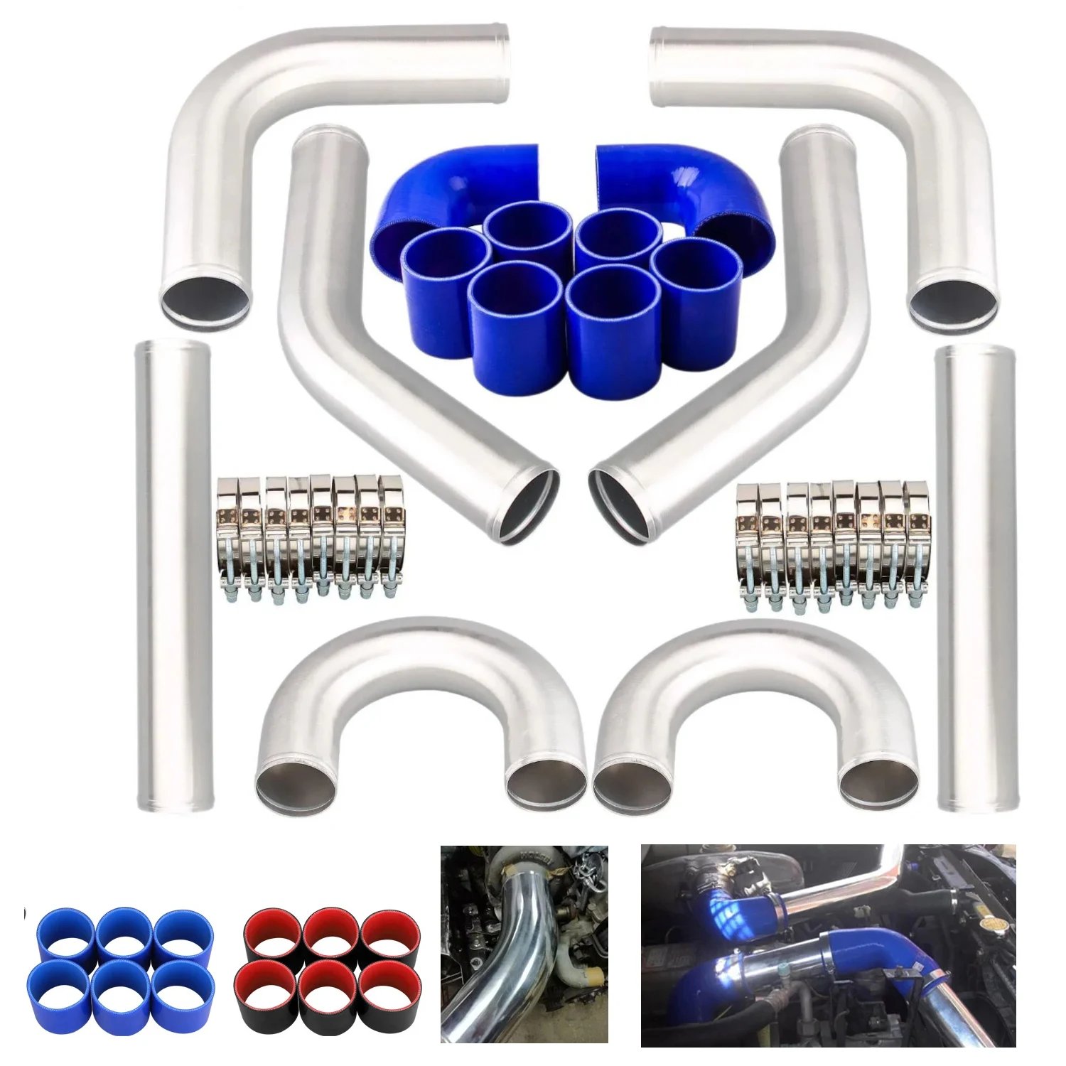 2,0 2,5 2,75 3,0 zoll Universal Turbo Inter Pipe Chrome Aluminium Piping Rohr Rohr + t-Klemmen + Silikon schläuche Blau Schwarz