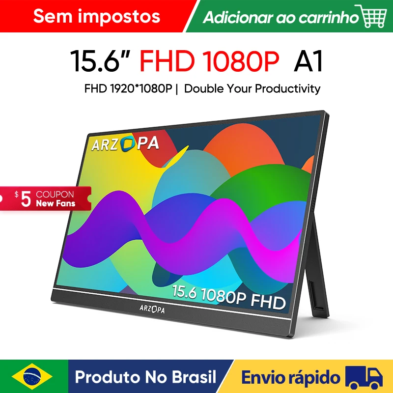 ARZOPA 15,6 Zoll 1080P FHD Tragbarer Monitor IPS-Bildschirm Externes Display mit Typ-C Mini HDMI für Laptop Mac PC Xbox PS Switch