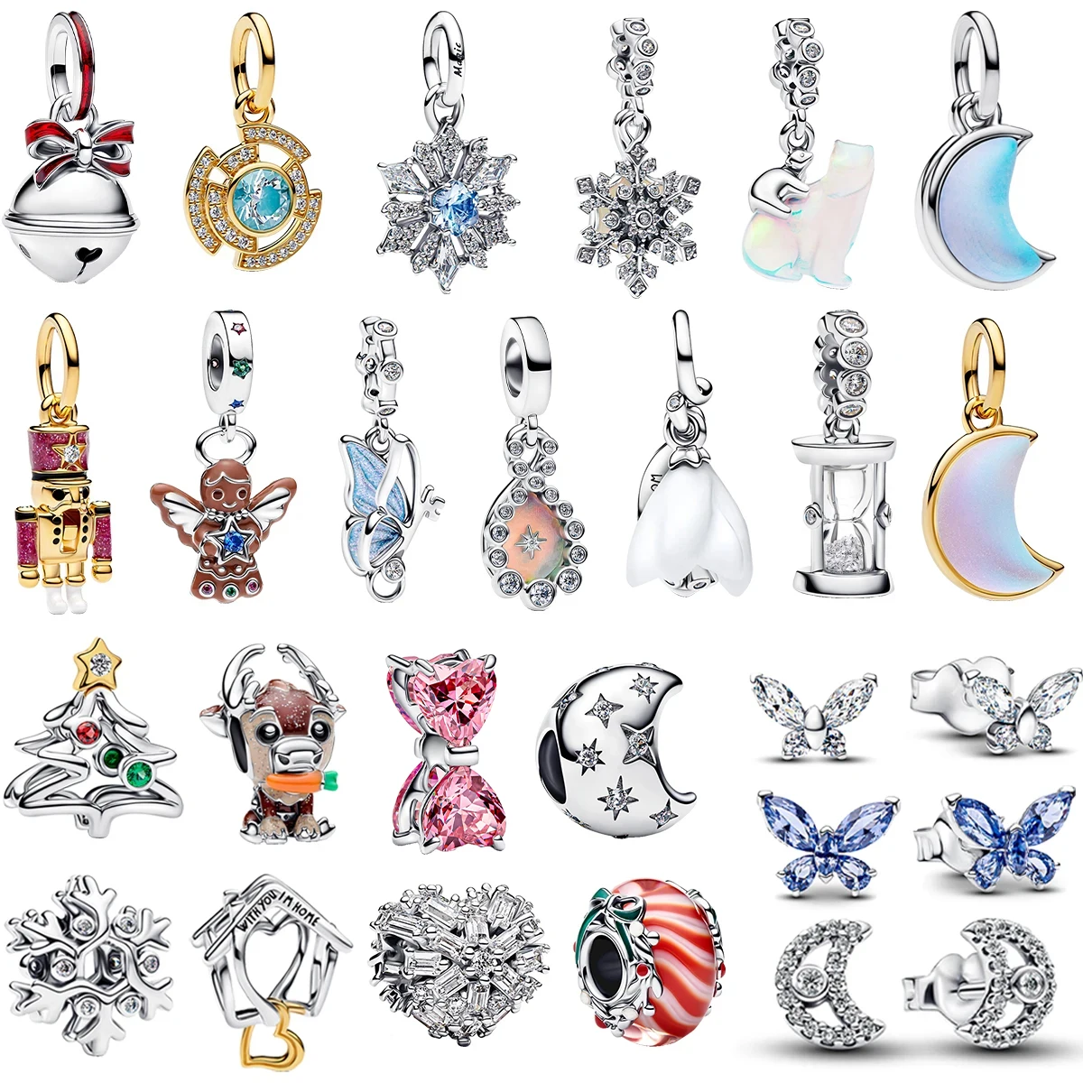 Original 925er Sterlingsilber, Weihnachtsanhänger, Schmetterling, Schneeflocke, Ohrringe, Perlen, Anhänger, passend für Armbänder, Halsketten, DIY-Schmuck, Geschenk