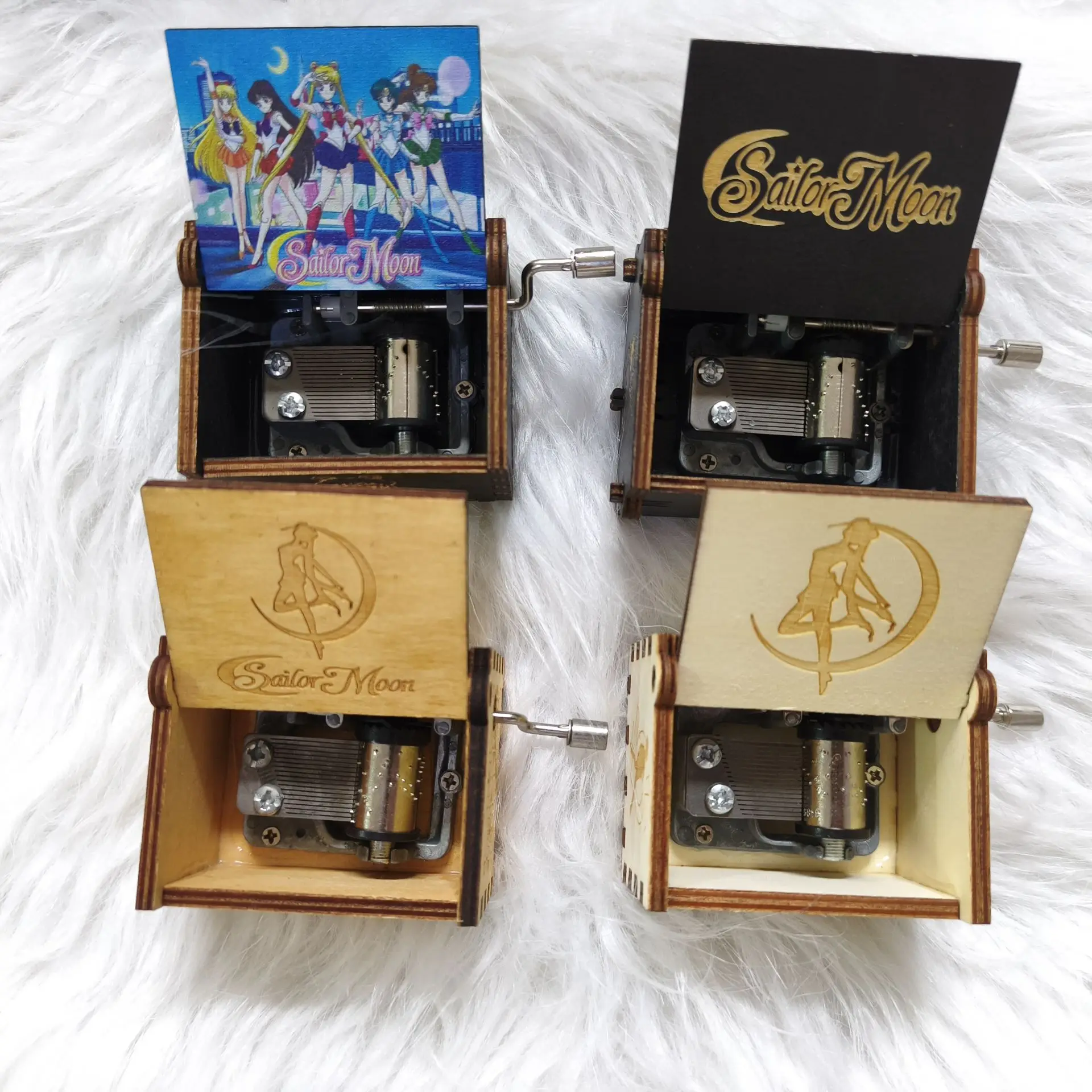 Heiße japanische Anime-Spieluhr – Handkurbel aus massivem Holz, klassische Anime-Thema-Melodie, Geschenk für Kinder/Ventilatoren, Heimdekoration und Weihnachtsgeschenk