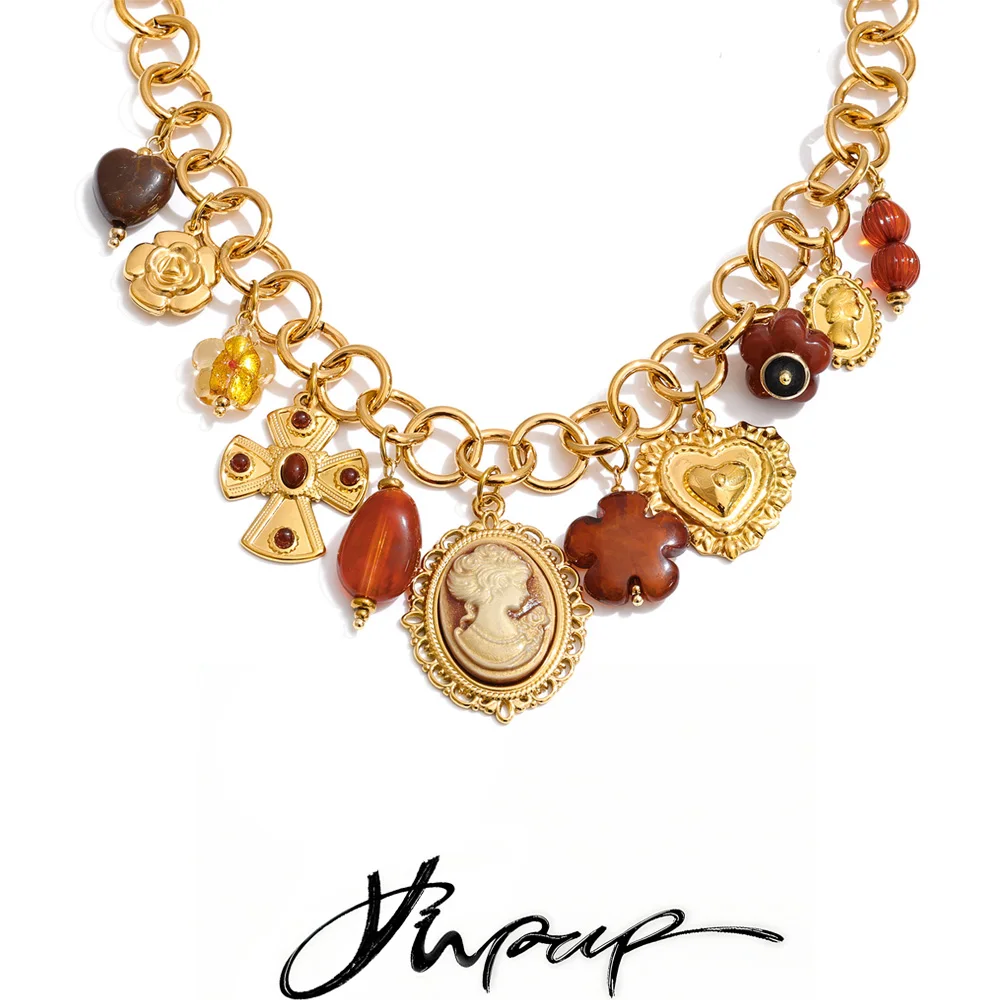 Yhpup Exklusives Design, handgefertigter Schmuck, Kunstharz, Blume, Herz, Porträt, Tropfen-Statement-Halskette, Edelstahl-Halsband-Zubehör