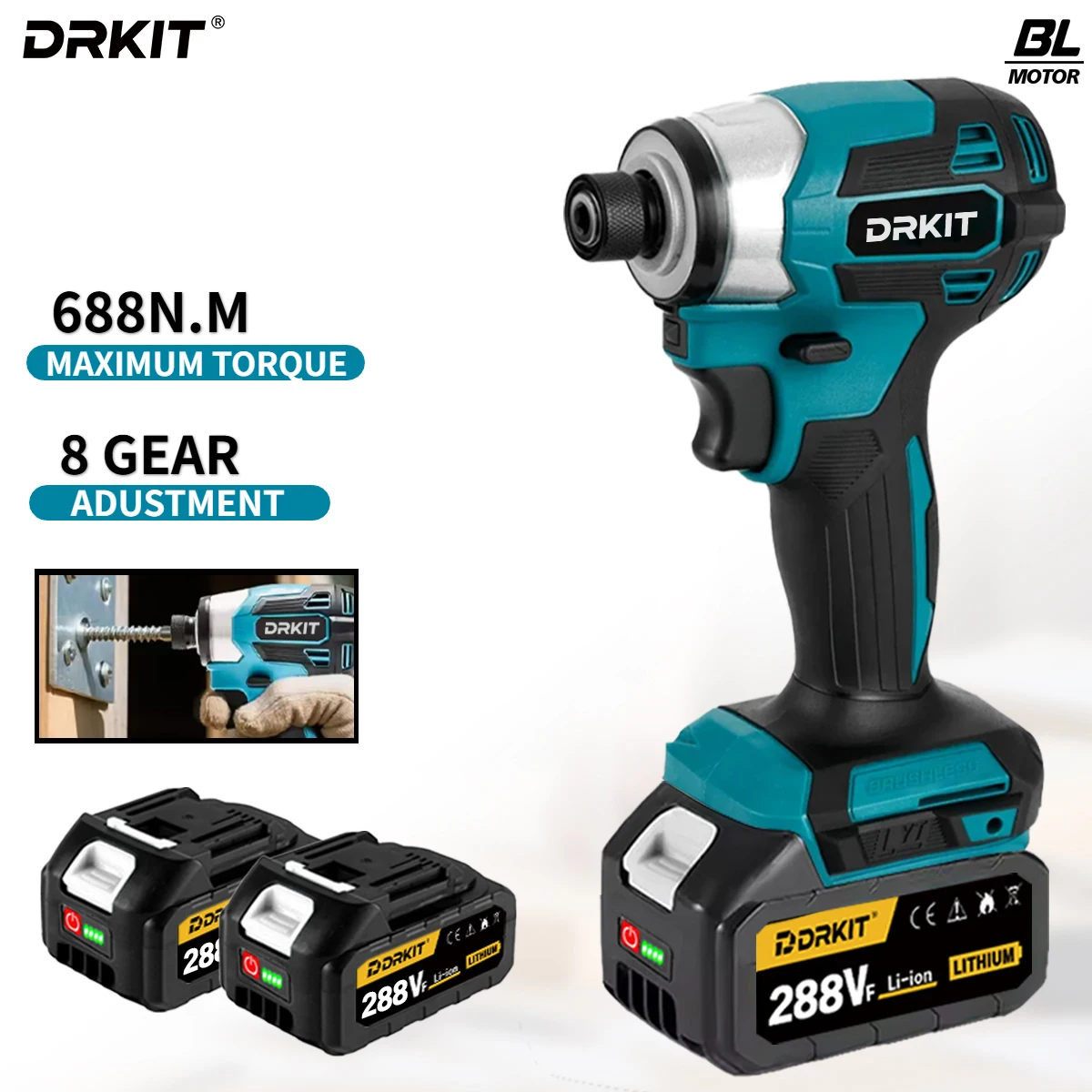 DRKIT 1/4'' Bürstenloser Elektroschrauber, kabelloser Schlagschrauber, Bohrer, Holzbolzen-Elektrowerkzeug für Makita 18V Akku